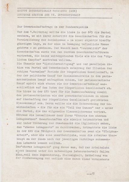Zur Gewerkschaftsfrage in der Bundesrepublik